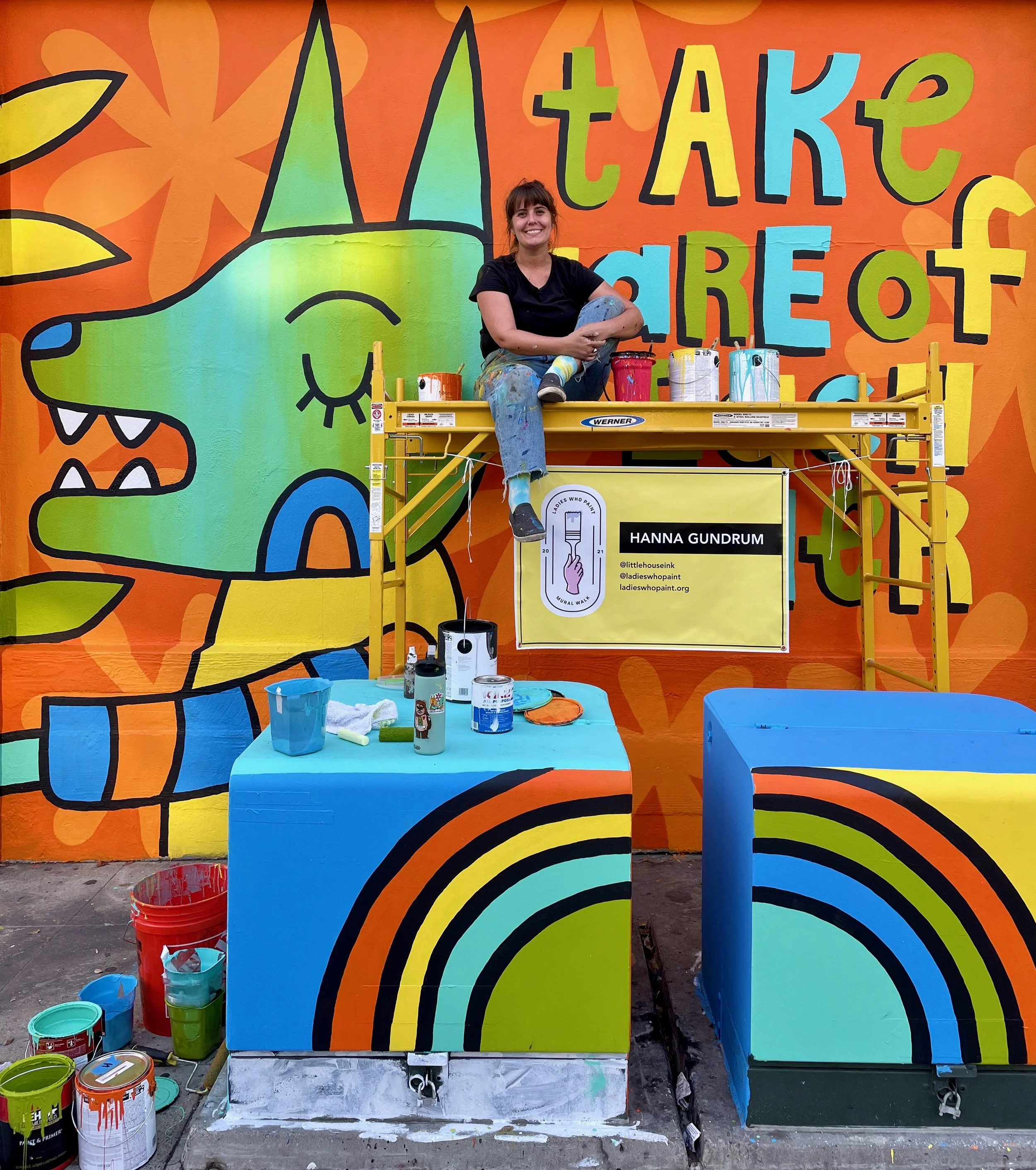 Ladie’s Who Paint (since closed), was a non profit organization empowering female muralists through community, resources, and a platform to showcase their work. Each year they put on an all female mural walk in East Village, San Diego.